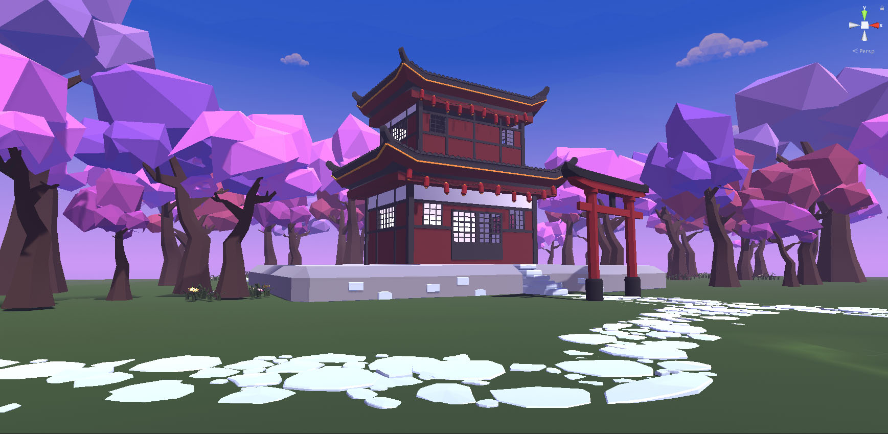 Low Poly Japanaese style village houses and garden concepts.